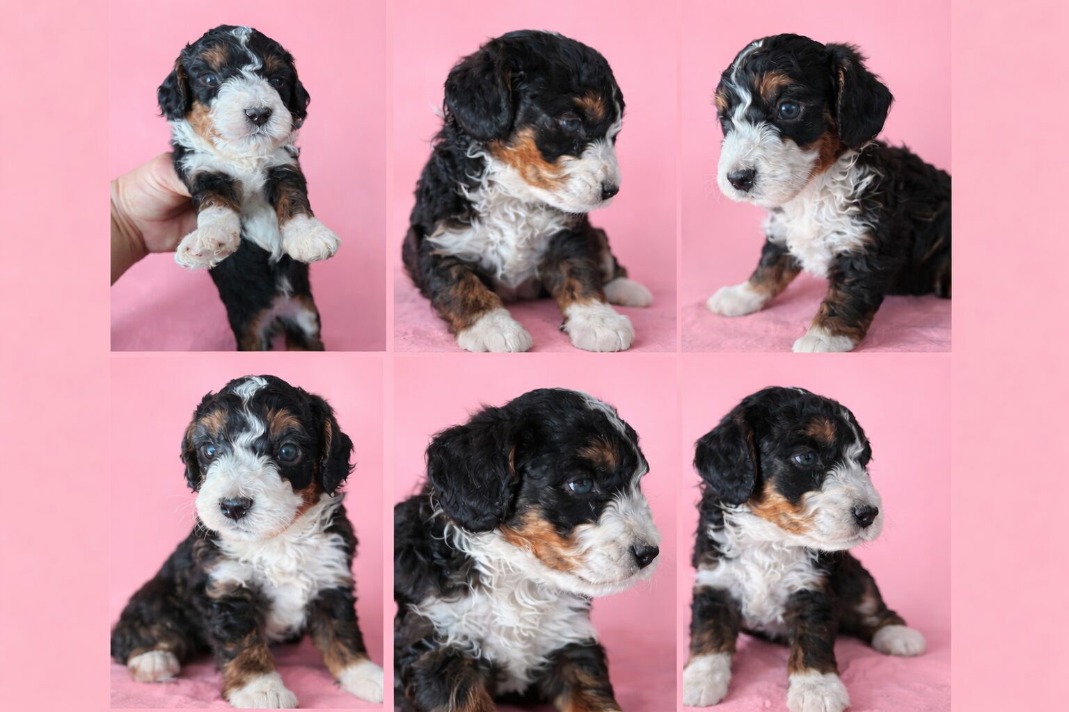 We currently have newborn Bernedoodles available, raised with love and care. Pricing ranges from $1,000 to $3,500 depending on size, color, and markings. Please call us directly for more information.